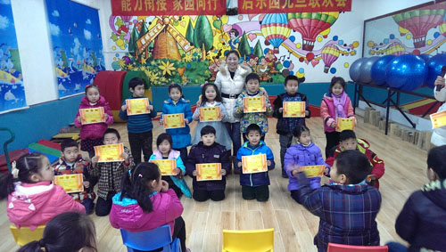 本次幼小衔接学前班“散学典礼”由冯玉老师主持。首先是让孩子们个人踊跃发言,谈自己一学期来的感想和收获,好多小朋友都争相发言,都在向小朋友和老师拜年,还有的孩子说感谢启乐园、感谢老师的培养,孩子们个个说的都很好,说明《语言沟通》课教的很扎实奥。接着是启乐园校长靳晶老师向全体孩子和教师发表了热情洋溢的讲话,首先祝贺每位小朋友通过一学期的感统训练、学习能力训练和专注力训练以及知识学习,综合能力进步明显,肯定了各科老师的工作成绩。根据孩子们的特长、成长和进步,给每个孩子颁发了奖状,孩子们个个都高兴的像收到珍贵礼物一样呵护着奖状。同时也给每个孩子发放了寒假作业,寒假作业不全是写的画的,而是大量的家庭感统训练和学习能力训练为主。最后,就是小朋友们的节目表演和礼物分享,各个都笑的很嗨,吃的很好,散学典礼在庄重而高兴中结束。